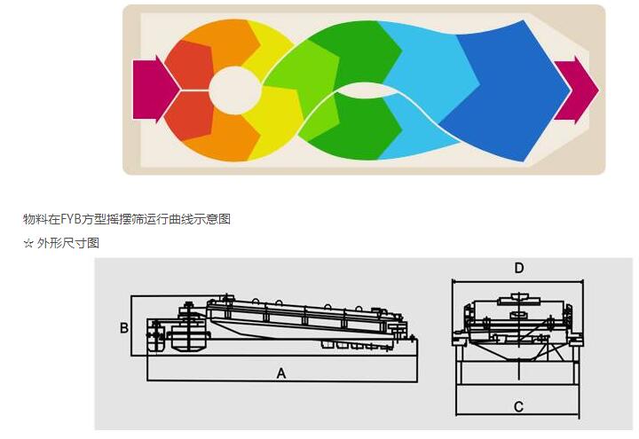 下圖可形象的說明FYB型搖擺篩是如何改變和控制物料在篩面上的運(yùn)動軌跡與滯留時間并進(jìn)一步提高篩分效率。
